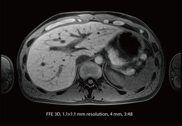 Расширение спектра обследуемых пациентов за счет ускоренного сканирования, позволяющего сократить время задержки дыхания, а также приложений быстрого сканирования на свободном дыхании, без контрастирования, которые позволяют улучшить и ускорить работу МР-кабинета, благодаря повышению комфорта пациентов.